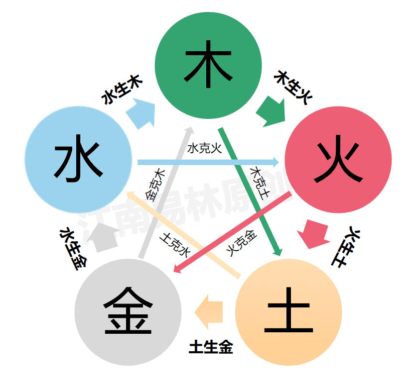 五行相克规律:就像警察管束罪犯,一行制约另一行平衡。